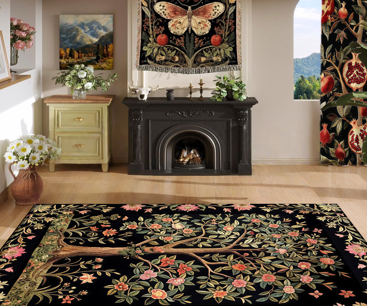 Ornate Grove Tree of Life Rug Baroque Nature Theme Cottagecore