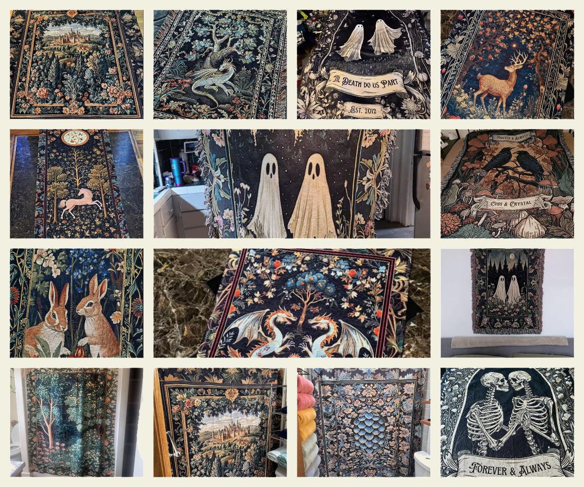 Goth Aesthetic Crow Woven Throw Tapestry Dark Academia