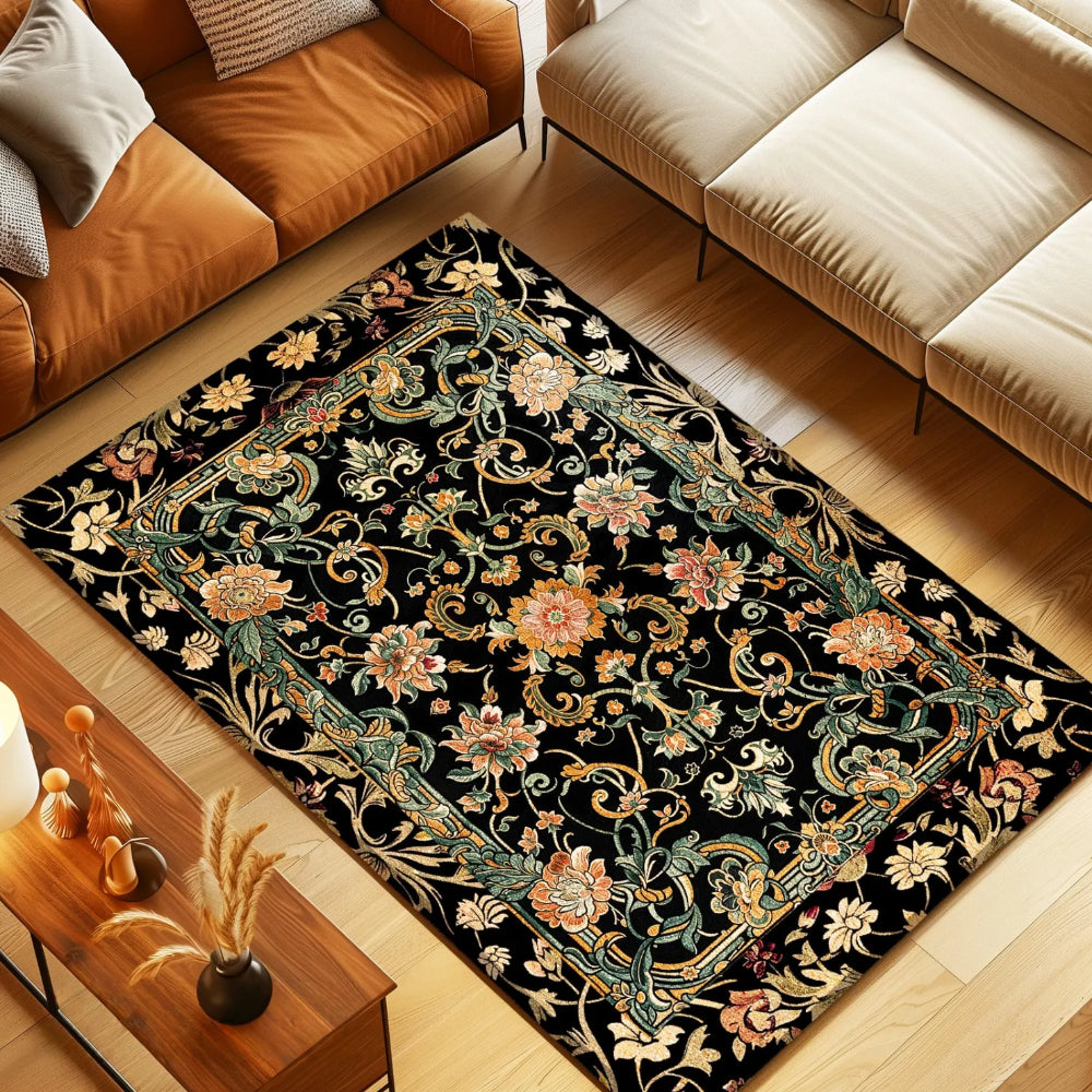 Dark Floral Rug Wildflower Aesthetic Gothic Home Decor
