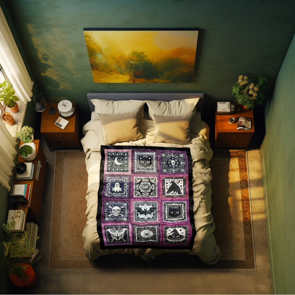 Pumpkin Bat Ghost Throw Blanket Gothic Witchy Purple