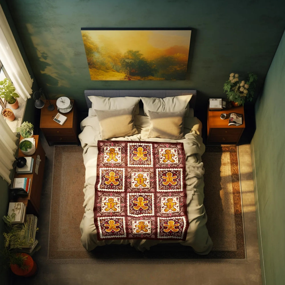 Retro Farmhouse Gingerbread Throw Blanket Xmas Gift